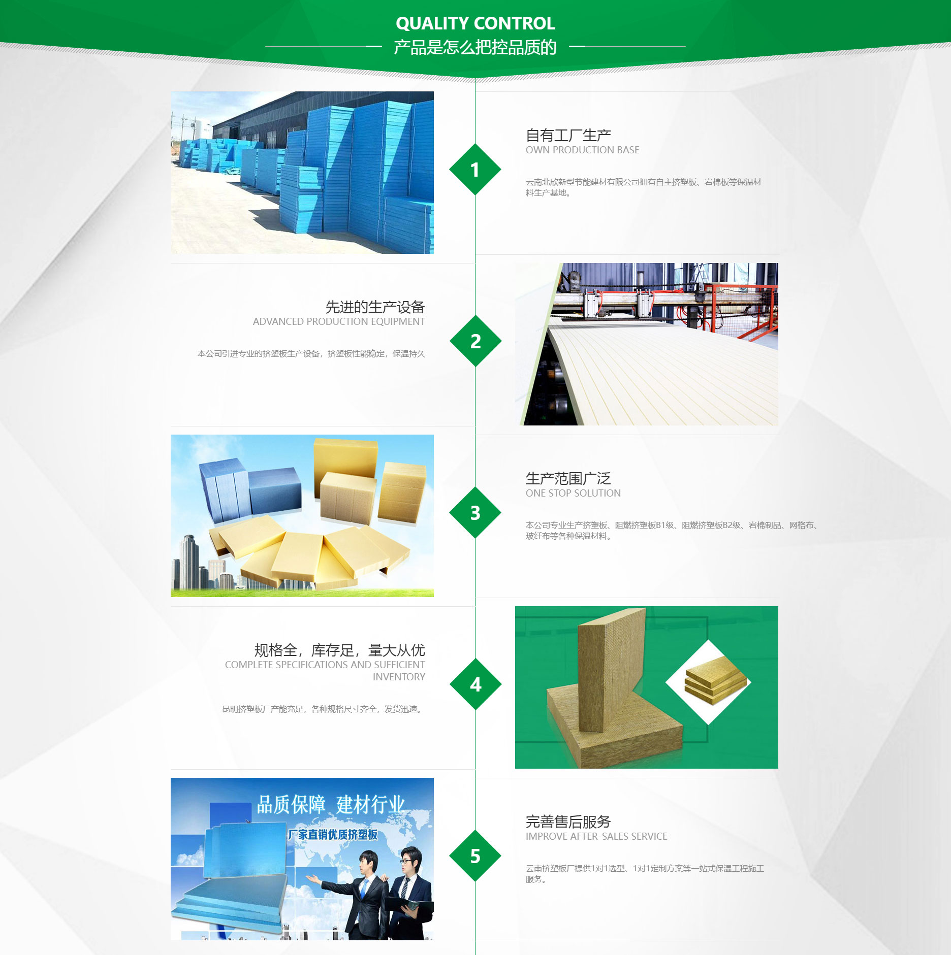 云南北欣擠塑板保溫材料廠(chǎng)(云南北欣新型節(jié)能建材有限公司)電話(huà):18669001271,是一家大型的保溫材料廠(chǎng)家。主要產(chǎn)品有擠塑板、阻燃擠塑板B1級(jí)、阻燃擠塑板B2級(jí)、巖棉板、巖棉管、巖棉氈、網(wǎng)格布、玻纖布、保溫砂漿、地暖輔材、橡塑板、橡塑管、玻璃棉、橡膠制品、硅酸鋁、?;⒅?、絕緣材料、防水材料等。 云南北欣擠塑板保溫材料廠(chǎng)(云南北欣新型節(jié)能建材有限公司)一貫重視產(chǎn)品質(zhì)量,嚴(yán)格遵守各項(xiàng)技術(shù)標(biāo)準(zhǔn),始終把安全和環(huán)保放在主要位置。本著以“用戶(hù)至上、質(zhì)量為本、價(jià)格合理”的宗旨為您服務(wù);同時(shí)本廠(chǎng)還擁有卓越的管理水平,超前的發(fā)展意識(shí),重視對(duì)客戶(hù)的信譽(yù)。同時(shí)積極支持及參與在化工建材行業(yè)、環(huán)境保護(hù)等方面的各項(xiàng)活動(dòng),堅(jiān)持科技創(chuàng)新,不斷開(kāi)發(fā)出新產(chǎn)品,以適應(yīng)社會(huì)發(fā)展的需要,為廣大客戶(hù)提供品質(zhì)完善、新型節(jié)能的綠色保溫產(chǎn)品。我公司一直秉承誠(chéng)信為先、互利共贏的原則,期望與您未來(lái)共創(chuàng)輝煌。